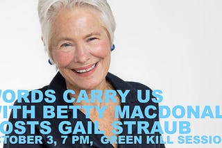 Words Carry Us with Betty MacDonald, October 3, 7 PM, Green Kill Sessions